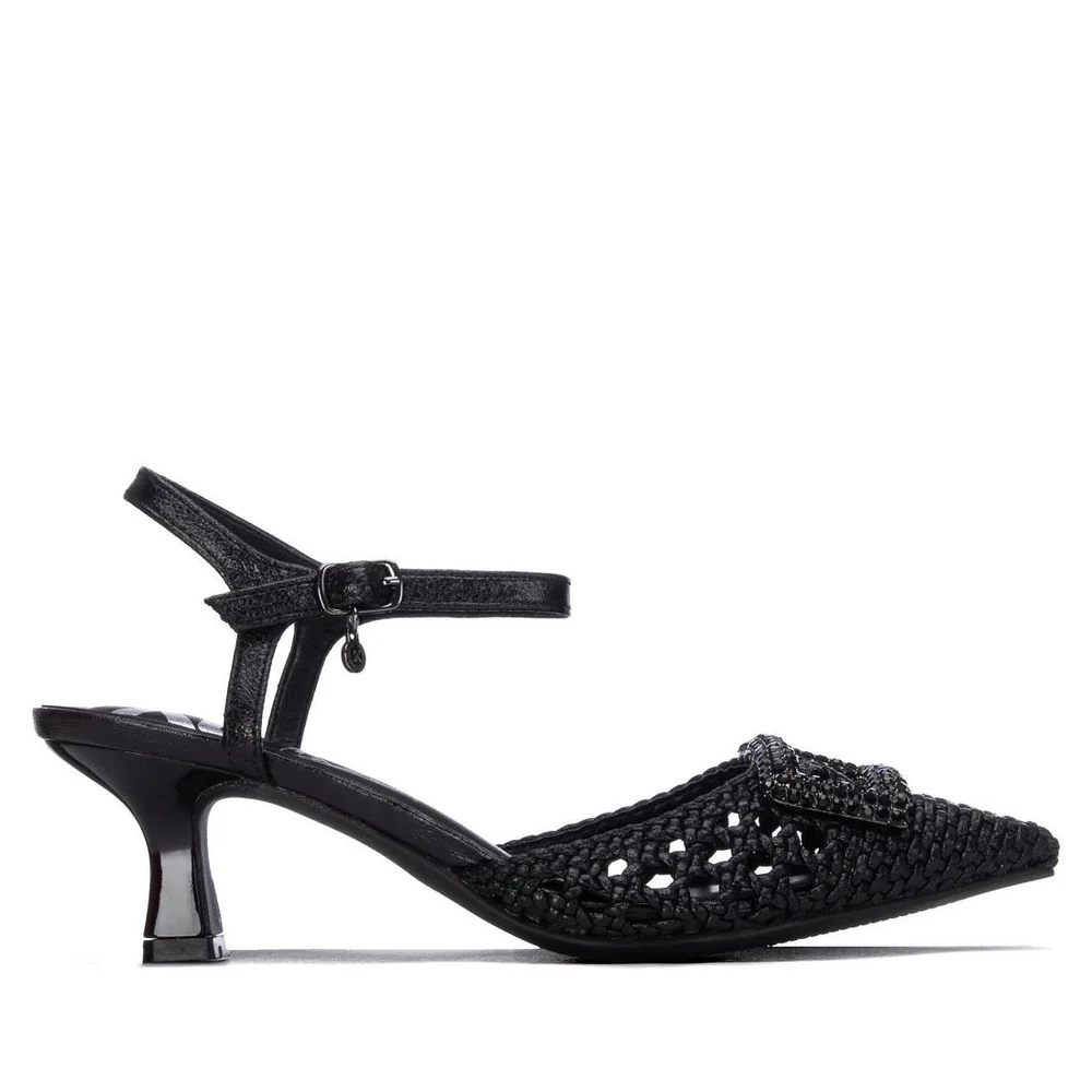 Décolleté da donna di Xti. Realizzate in un materiale simile alla pelle con un elegante design a rete intrecciata. Un dettaglio di strass sulla tomaia aggiunge un tocco sofisticato e scintillante. Sono dotate di cinturino alla caviglia con fibbia, che garantisce una calzata sicura e confortevole. Il tacco a spillo di 6 cm è ideale per le occasioni speciali o per aggiungere un tocco di eleganza a qualsiasi look. Questo modello ha ottenuto la certificazione vegana da PETA (l’organizzazione globale per i diritti degli animali).