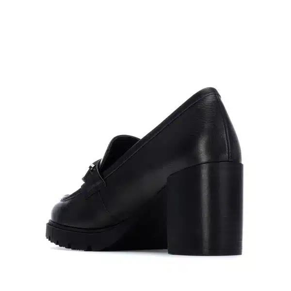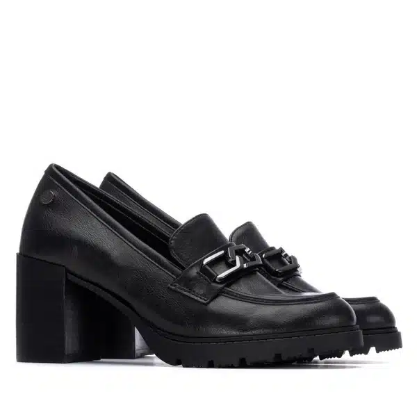 Mocassino da donna del marchio Xti. Realizzato in similpelle. Dettagli metallici per un tocco più elegante. L’ampio tacco di 8 cm offre comfort per tutto il giorno. Suola in gomma antiscivolo. Soletta interna rimovibile.